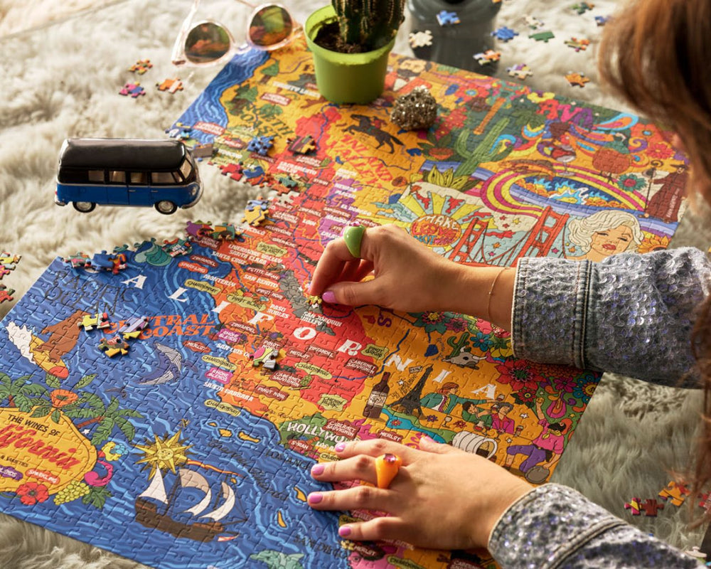 At Water & Wines, he has illustrated many of the brand’s most beloved puzzles, blending artistic detail with thoughtful research to bring each map to life. His pieces invite you to explore — to see the poetry in geography, the character in a grape, and the story hidden in every contour.